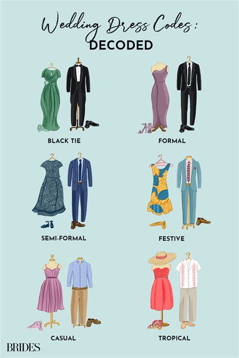 Cocktail attire is a great way to add some fun to your wedding dress code. For women, this can mean a short, knee-length dress or a jumpsuit. Men can opt for a sharp looking suit. When it comes to colors and patterns, feel free to experiment and have some fun. Think bright colors, bold prints and interesting textures. For a semi-formal dress code, stick to a more classic look with a nice dress or suit.